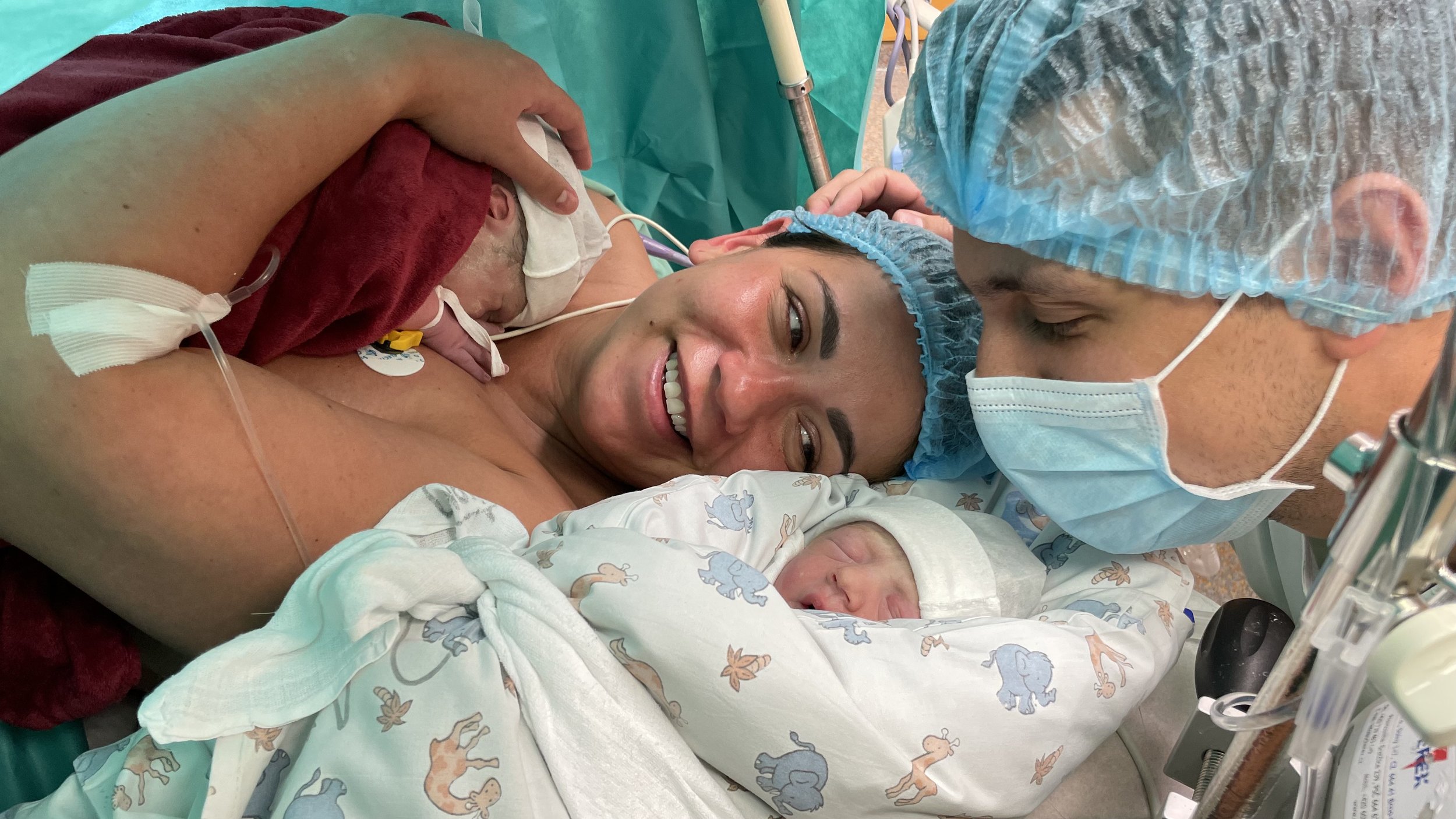 Pak hned pokračovali a minutu na to byl na světě Adámek. Toho jsem slyšela, jak byl nalokanej vody a snažil se nadechnout. za pár vteřin začal plakat i on a bylo to. Zase mi ho ukázali v rychlosti u hlavy a odnesli vážit, čistit a nevim co.