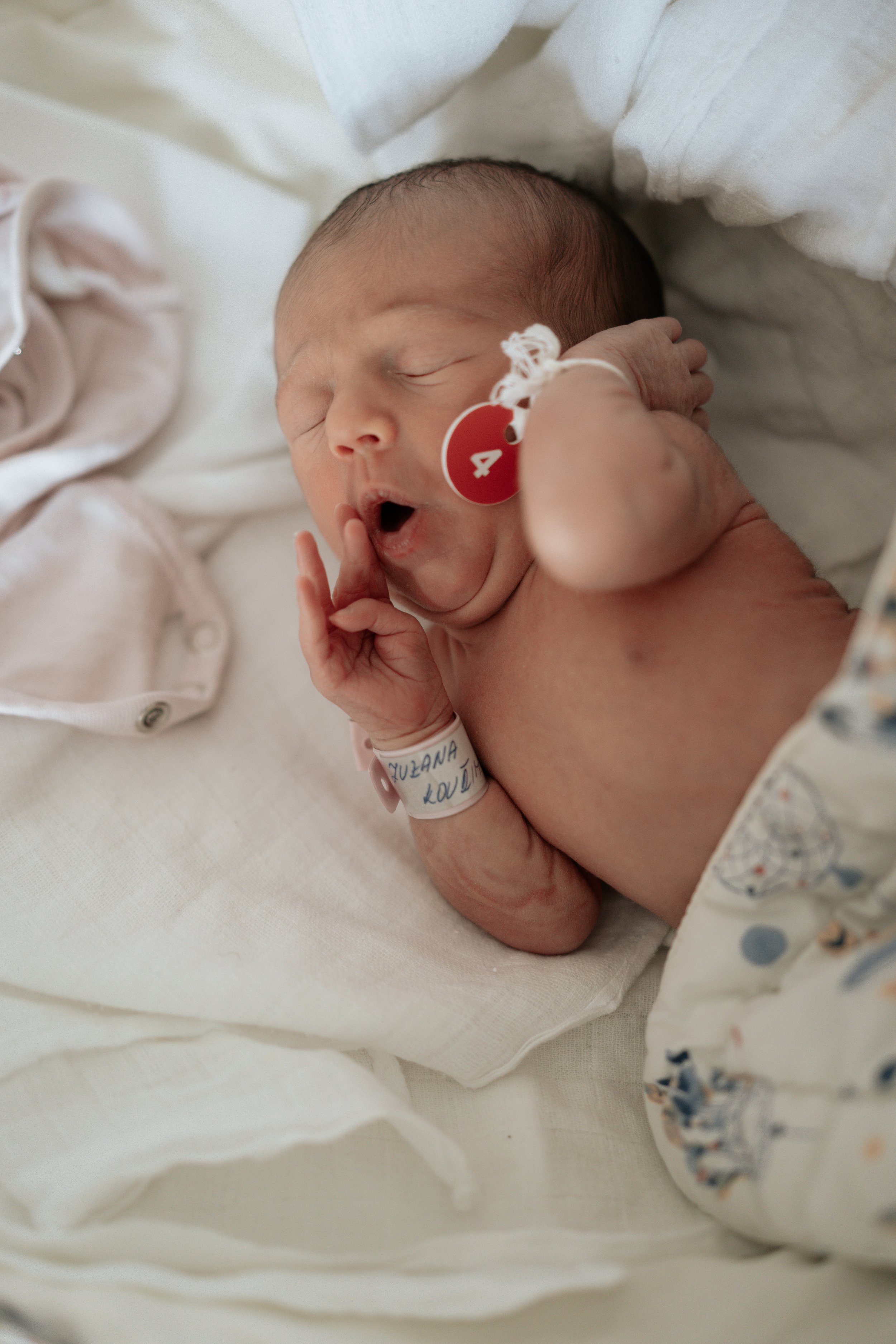 Slyšeli jsme jí plakat a říkat doktorku. S Vlastíkem jsme se na sebe podívali a začali se smát a jenom říkat “Už je tady, máme holčičku!” Ukázali mi jí za tou plachtou a odnesli čistit, vážit atak.