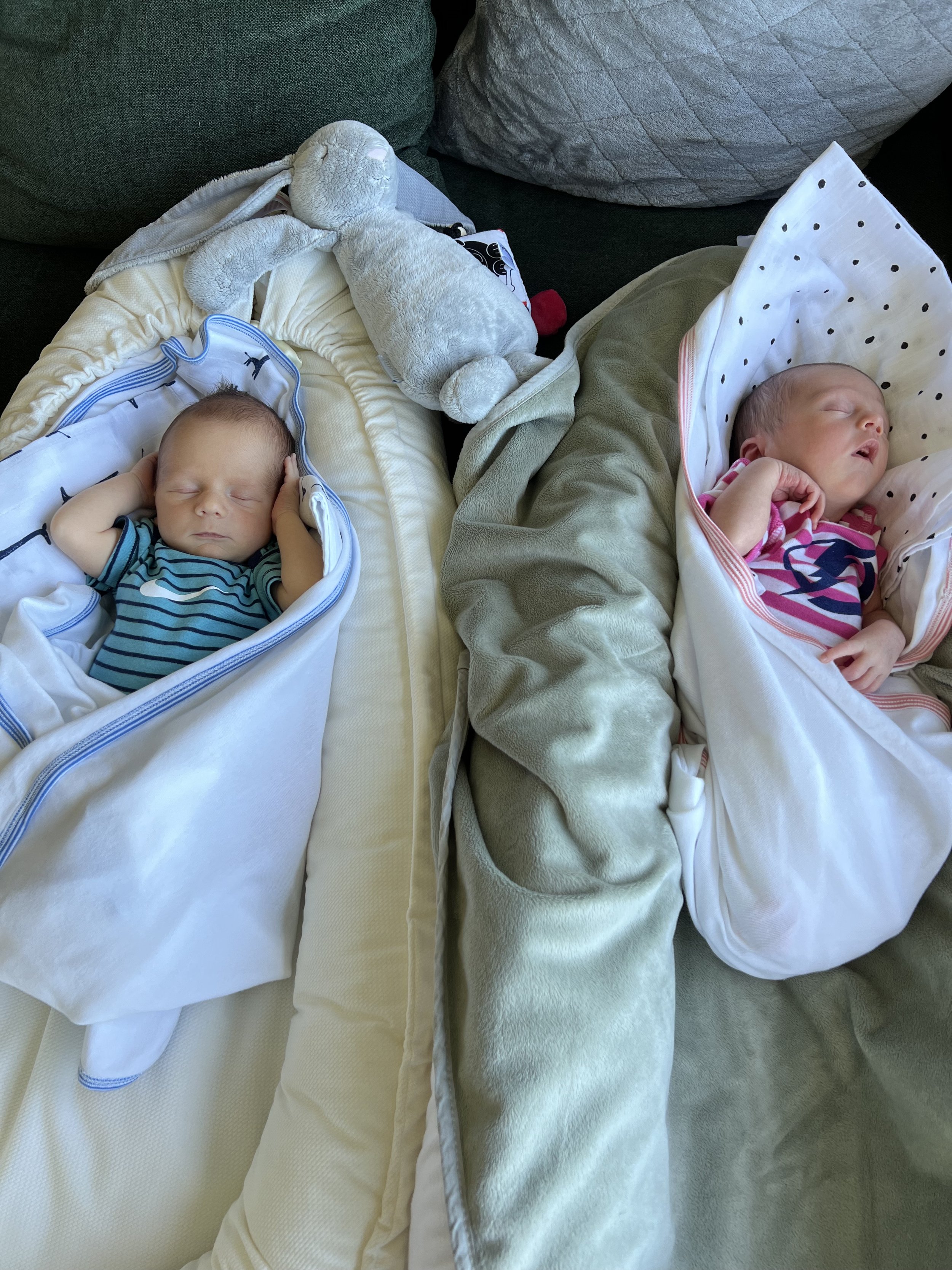 Postupem času a dní se přidávaly takový fajnový myšlenky, že tohle přece nikdy nemůžu zvládnout a zcela otevřeně řikám, že jsem si i chvíli nadávala, co že jsme to udělali. Že to prostě nezvládneme. Bonusový body tomu dodaly ještě monitory dechu, který se několikrát falešně, nebo jak to říct, rozhoukaly, protože děti byly moc lehký a my je měli špatně nainstalovaný. To bylo hodně v pohodě, protože jsem zhruba měsíc měla v těle záškuby kdykoliv se v bytě rozezněla jakákoliv elektronika. Bylo to tak hrozný, že jsem spala u dětí na zemi a klepala se hrůzou.